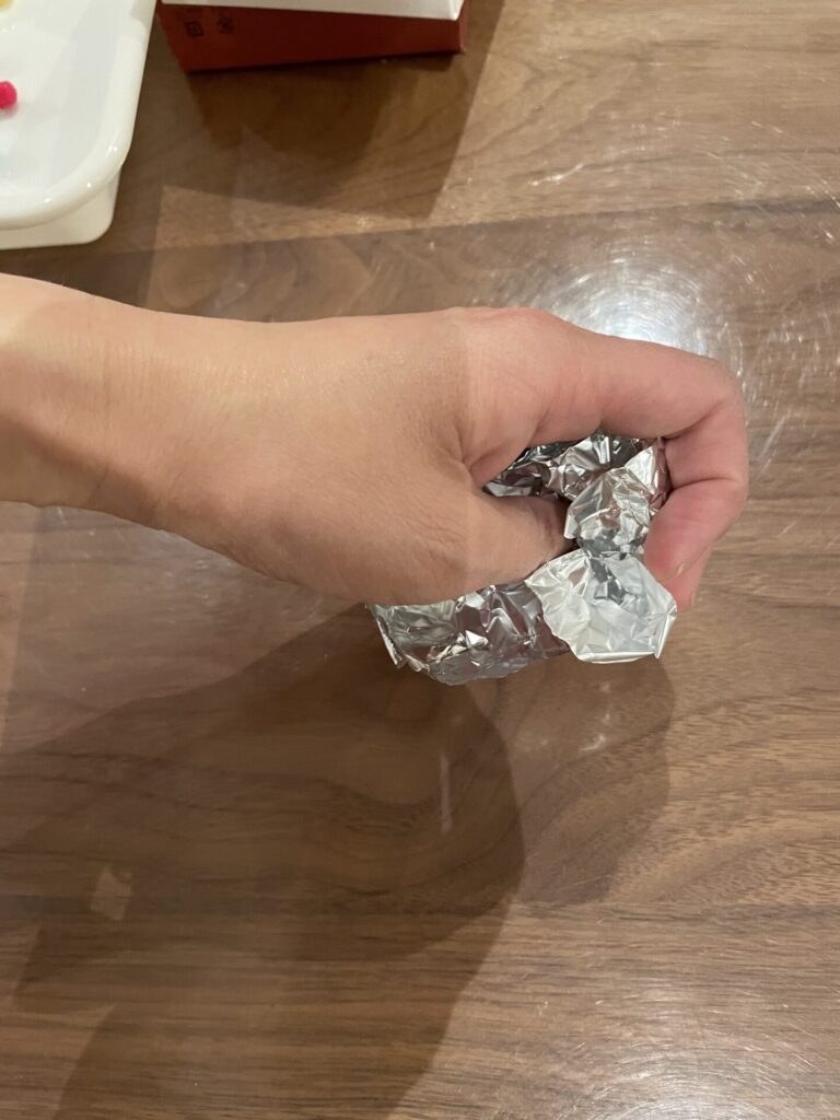 Roll out a small piece of aluminum foil and paint the aluminum foil.